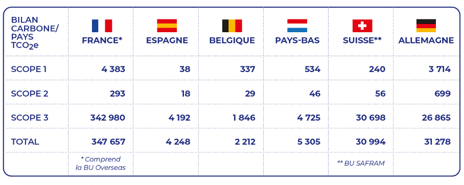 Scope 1 : Transition énergétique de la flotte en propre avec conversion au GNV/bioGNV et intégration de biocarburants XTL. L’électrification des poids lourds urbains en France prévue pour 2025 complète le déploiement du BioGNC en Espagne, du HVO en Allemagne et des cuves B100 chez Safram. La formation à l’écoconduite réduit également significativement la consommation.