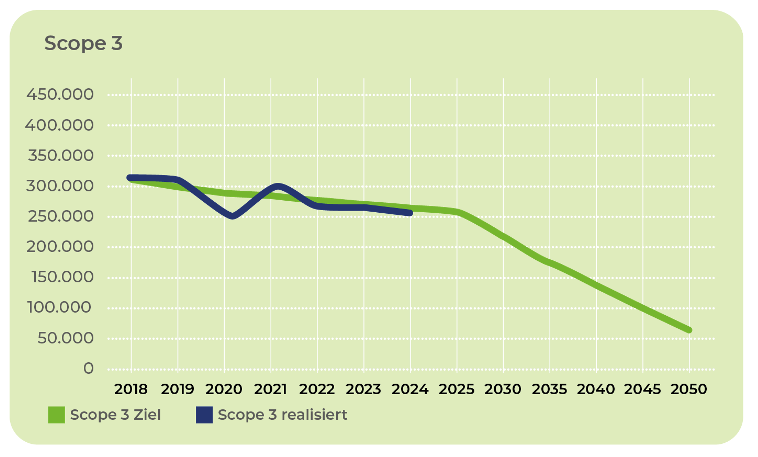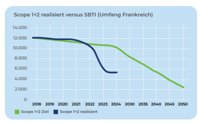 Scope 3: Erweiterte Umsetzung der Strategie bei Partnern mit Ausbau der Verkehrsverlagerung und Unterstützung von Subunternehmern im Rahmen des Energiewendepakts. Der Ansatz umfasst die verstärkte Dekarbonisierung des Chartergeschäfts und im Rahmen des RFAR-Labels ein neues Klimabewertungsinstrument für Lieferanten außerhalb des Transportsektors im Jahr 2025.